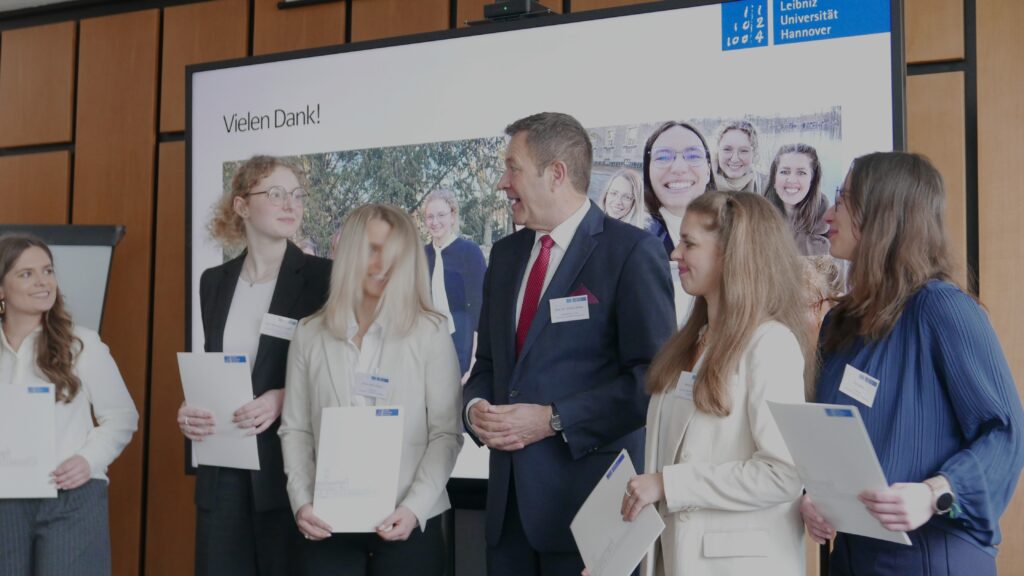 Ein KI Workshop für Laien aller Altersgruppen; „Leibnitz blüht auf“: der Biodiversifitätskrise durch eine Wildblumenwiese zu entgegnen; Waywise, eine praktische Studienorientierung für Schüler oder Scroll Smart, ein interaktiver Workshop für Schüler mit dem Ziel eines achtsamen Umgangs mit Social Media: diese Themen hatten die Studieren im 7. Jahrgang 25/26 des Kurt Alten Exzellenzprogramms an der Leibniz Universität Hannover im Rahmen ihrer sozialen Projekte bearbeitet, die anlässlich der Abschlussfeier am 15.04.2026 von ihnen präsentiert wurden.